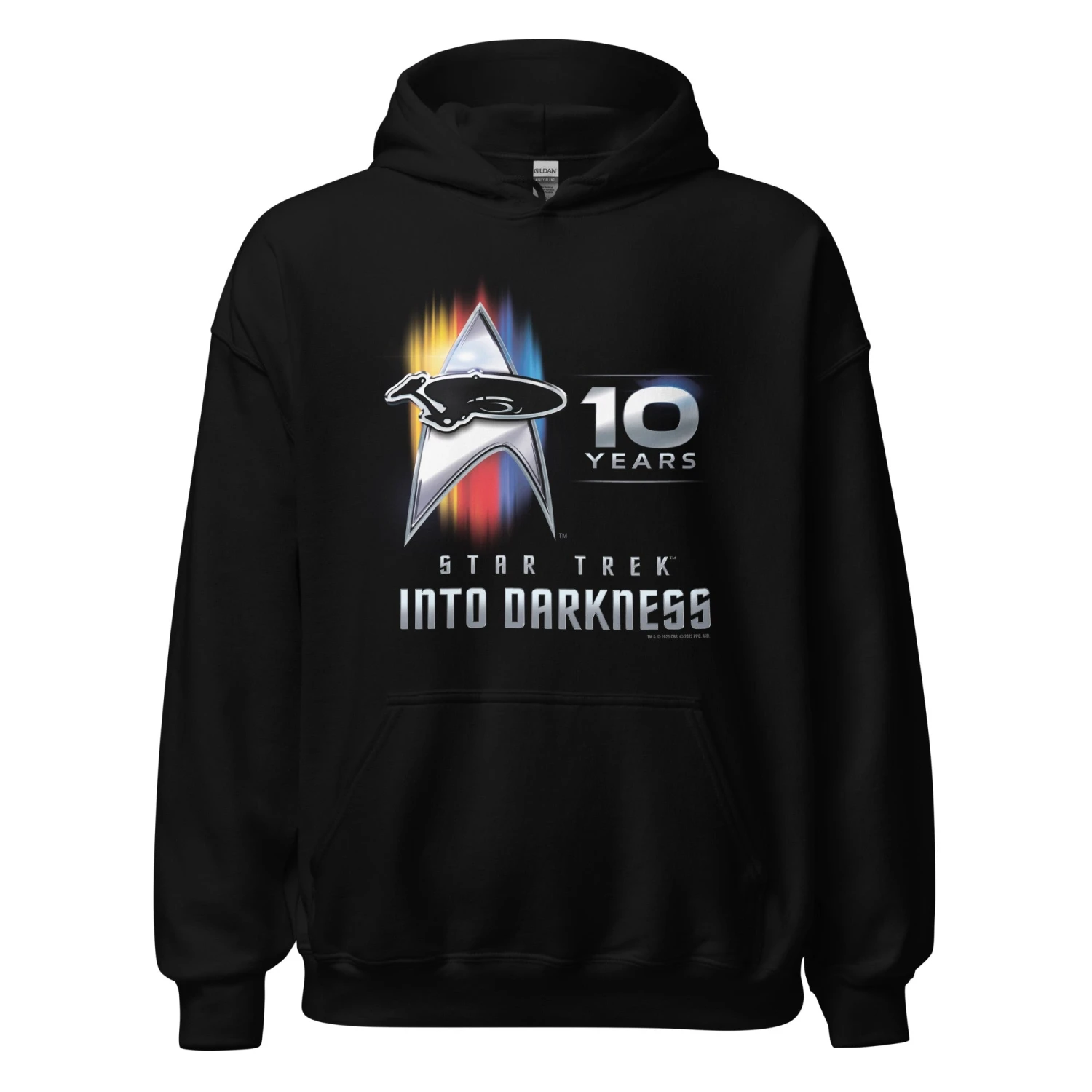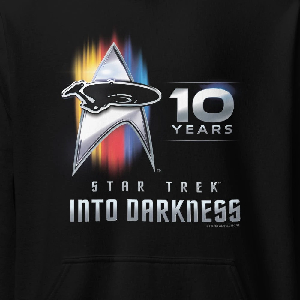 Celebrate the 10th Anniversary of Star Trek: Into Darkness with the Star Trek: Into Darkness 10th Anniversary Adult Hooded Sweatshirt! This is the perfect apparel piece for any fan of the series!
